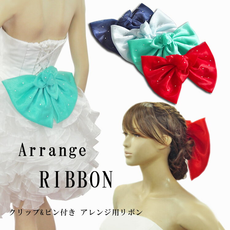 【定形外発送で送料無料】リボン アレンジリボン ヘッドドレス (ネイビー ブルー グリーン レッド) ウェディングドレス カラードレス バックリボン アレンジ ウエディング 結婚式 二次会 パーティー 発表会 ダンス 髪飾り ラインストーン ヘアアクセサリー(cs2068-T)