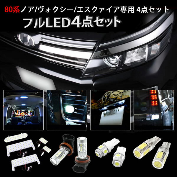 【7月上旬入荷予約】80系ノア ヴォクシー エスクァイア [前期]専用 フルLED4点セット[LEDルームランプ][LEDフォグランプ][LEDライセンスランプ][LEDバックランプ]