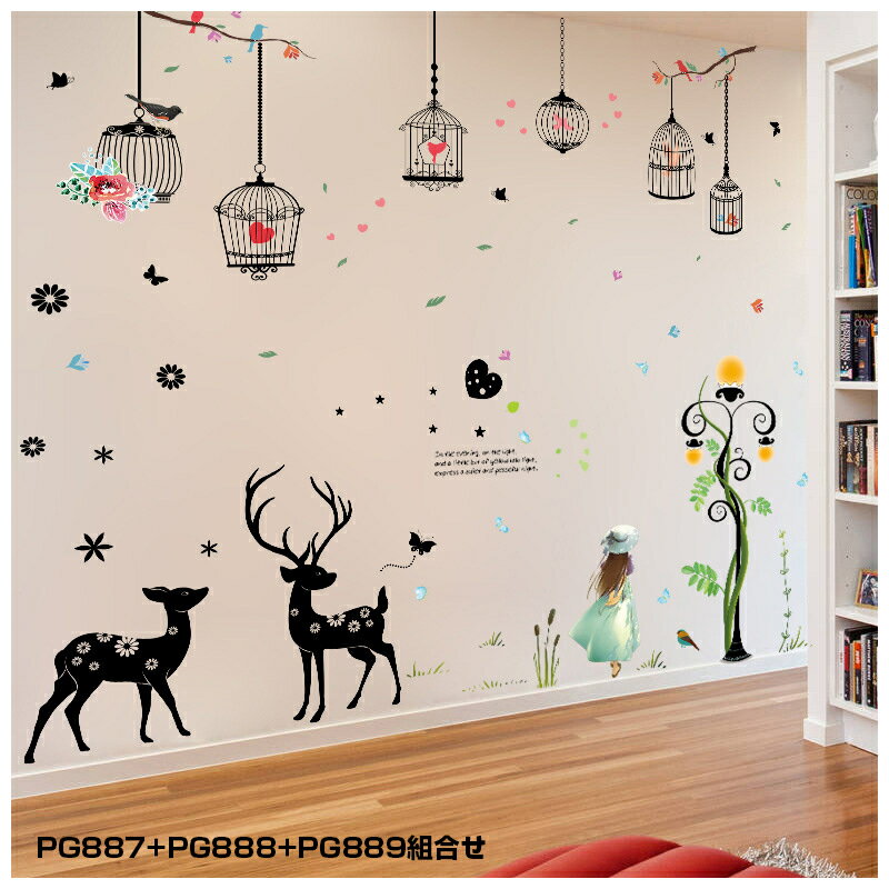 送料無料ウォールステッカー ウォールシール シール ステッカー 壁用ステッカー 装飾 壁装飾 鳥かご 鳥 女の子 英語 英字 鹿 蝶 木 子供部屋 リビング 寝室 インテリア壁飾り はがせる 簡単 華やか かわいい